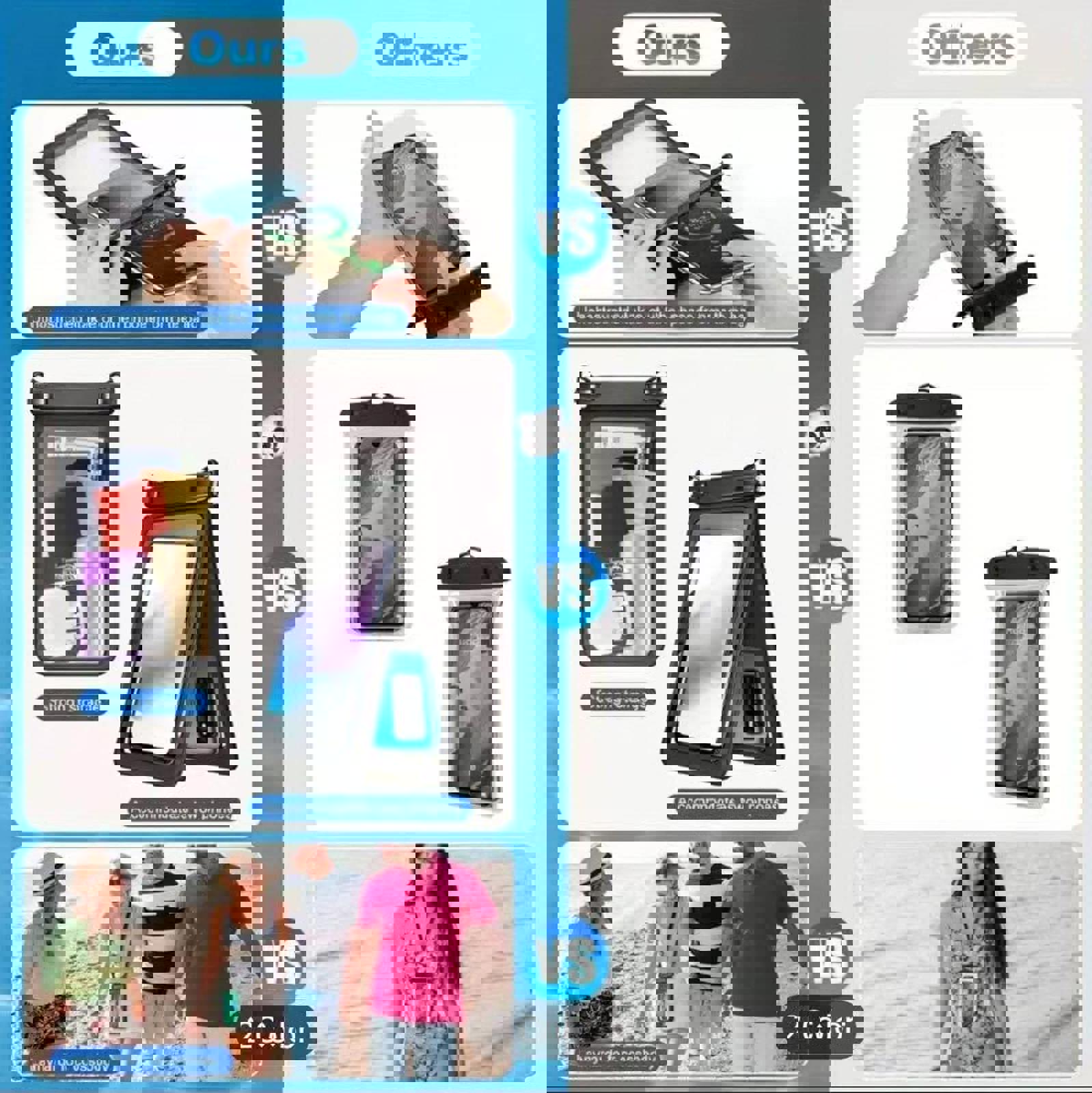 This upgraded IPX8 waterproof phone case protects your phone up to 30 meters deep. Whether you're at the beach, pool, or out kayaking, your essentials stay dry and secure.